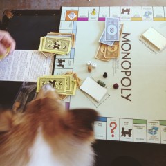 Fred arrived at 2 p.m. He first pan-fried the onions, then quickly set to separating and cleaning the various organs. When asked about his aptitude for trimming lungs, Fred responded casually with, ‘I used to do this as a child whenever I went to my grandparents’ place. You know.’ Uh huh, Fred. Sure I know, I thought. My visits to my grandparents’ involved colouring books and tea parties for my stuffed animals. Anyway, within an hour, the lungs, heart, and liver were diced apart and bubbling away on the stove. During this time we took the opportunity to duel it out over a friendly game of Monopoly. Thanks largely to a well-timed ‘Free Parking’, Fred made easy (well, 2+ hours) work of Wilf and I. (I’m also convinced that Cousteau ate half my money, but I didn’t want to implicate him…) I was actually really surprised at how much I enjoyed the game, and find it amazing that I hadn’t played it since elementary school.